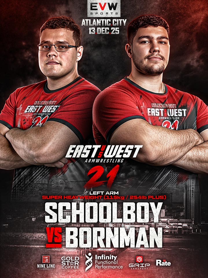 The Press Conference will be live the day before on the Youtube channel of East vs West Armwrestling. Press Conference Timings will be announced on our Socials.